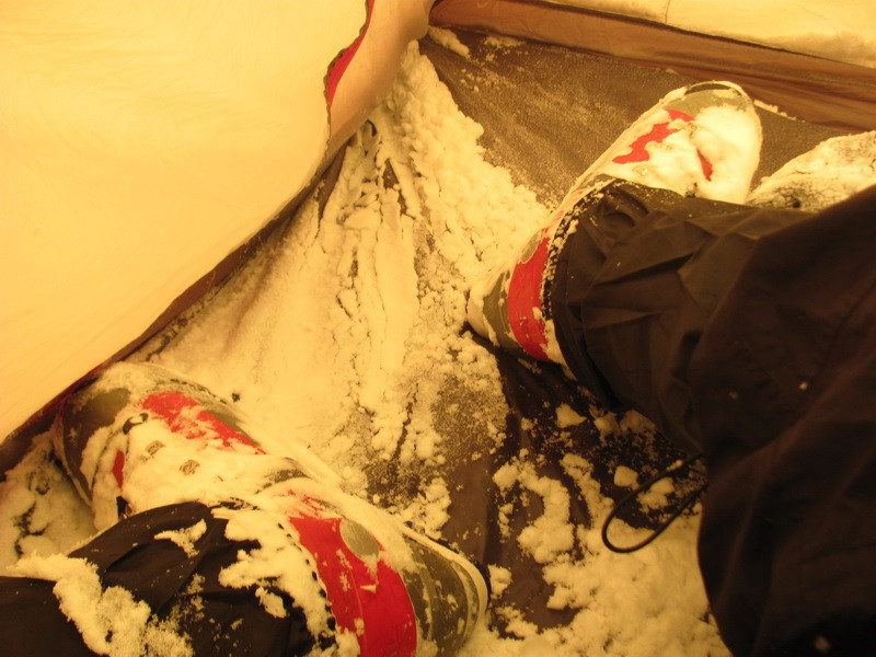 Ужин был самым душевным, какие только бывают. Набрались бы еще, но обильный снег хлопьями разогнал веселых туристов по палаткам. Аркадий идти отказался и долго еще снаружи, несмотря на непогоду, жег костер. На стенке палатки разыгралась пантомима отсветов и теней.