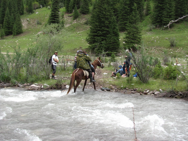 Худощавый загорелый киргиз в красной майке ходил по противоположному берегу и активно жестикулировал. Кричать бесполезно.
