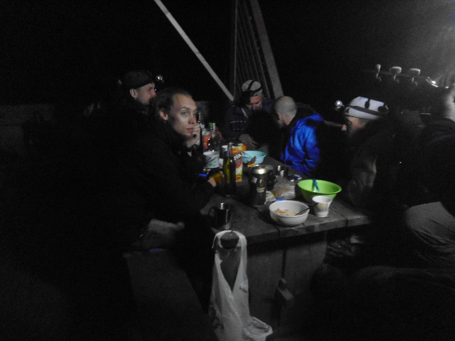 Часам к 17.00 мы добрались до подножия Говерлы и разбили лагерь. Лагерь разбили в больших деревянных беседках. Никогда ещё такого не видел. Получилось весьма оригинально. И главное - от стихии всякой защищает. Посиделки получились очень душевные, наконец-то я запомнил всех поименно, по лицам и по голосам. А как мы пели… м-м-м-м… Миша такие красивые романсы выдавал… Дима всё время что-то про войну заказывал…Андрей подвывал и подливал…Максимчик вечно что-то готовил… Лёва костерок маленький изобразил около беседки… Вообщем посидели отлично.