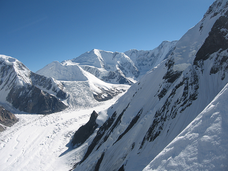 Завершилась экспедиция белоруской команды клуба "Магадан" для восхождения на вершину Хан-Тенгри с ледника Северный Иныльчек горного массива Тянь-Шань. Хан-Тенгри расположена в хребте Тагри-таг Центрального Тянь-Шаня между заснеженным массивом Шатер (6637 м) и широкой, похожей на неправильную трапецию вершиной пика Чапаева (6371 м). Гора по форме напоминает правильную красивую пирамиду, прикрытую снежно-ледовым покрывалом, со скальными выходами мрамора. Хан-Тенгри в переводе с монгольского-"властелин неба". Казахи и киргизы с незапамятных времен называют ее Кан-Тоо (от тюрк. "кан" - кровь, "тоо" - гора). Это название они объясняют тем, что под красноватыми закатными лучами солнца верхняя часть вершины становится почти красной, а тени от проносящихся над ней облаков создают подобие стекающих с нее красных струй.
