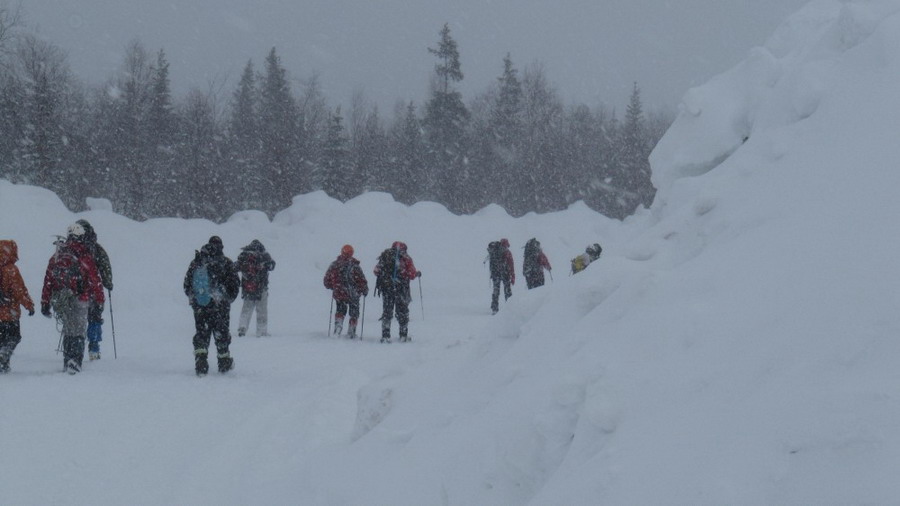 Первый день мы посвятили снежному занятию. Выбрались под Малый Вудьявр и поработали со снегом.