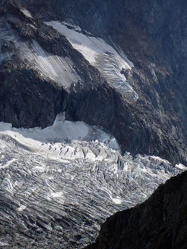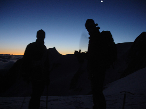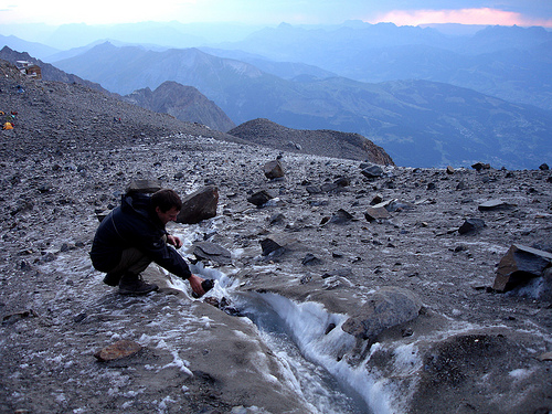 Первый день оказался достаточно простым и, заночевав на леднике возле Tete Rousse, мы набрали удивительно вкусную воду в ручье. Последний ручей, перед нетающими снегам….