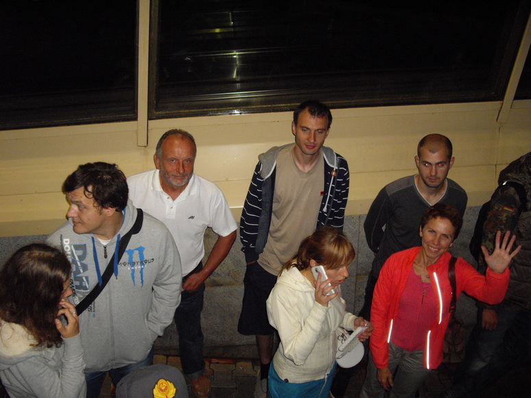 Поезд приходил ранним утром. И, не смотря на то, нас встречала большая компания (Magadan.by, значит, любят). Меня особо не удивишь. Но тут, выходя битой собакой из вагона, едва не выпал в осадок. Баян, бубен, трещетки, пирог, транспаранты (определенно, нас любят).