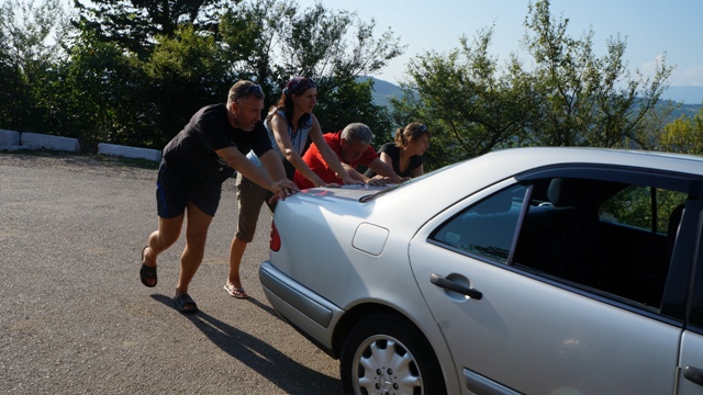 По дороге обратно встретили древнюю пожарную машину, которая пыталась подняться к горящему дому. Но безуспешно, т.к. и машина была слишком тяжелая, а подъем оказался слишком крут.
