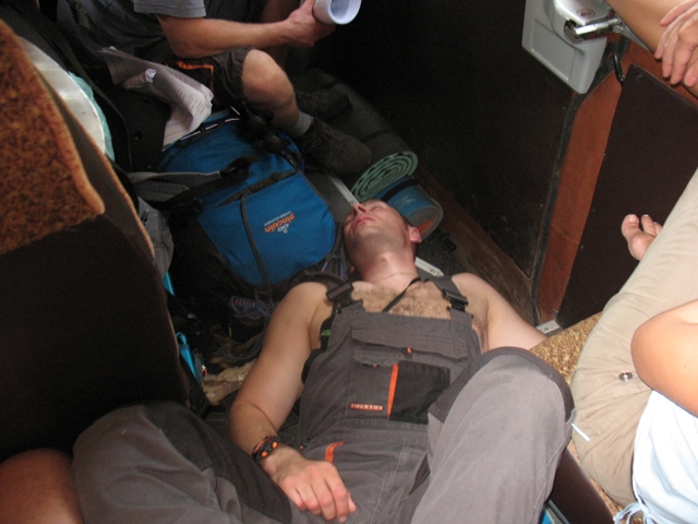 Рано утром несмотря на огромное желание поспать все потихоньку начали шевелиться и собираться выдвигаться на маршрут. Группа № 2, а именно: Русьянов, Полковник Малышев, Оля Хлимович, Татьяна Арнтгольц и Екатерина Гуд, собрав рюкзаки, начала грузиться в спринтер Гиги. Больше места в нашей карете все-таки занимали рюкзаки, нежели люди. Пришлось потесниться, чтобы все смогли сеть.
