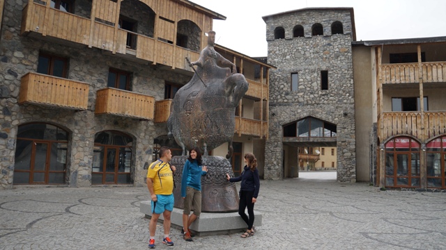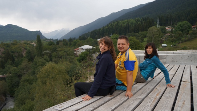 По дороге остановились на перекус. Место перекуса представляло собой деревянную хибарку, где можно было отведать грузинские национальные блюда. Мы с радостью заказали очередное хачапури, пофотографировались, пообщались с группой итальянцев, которые также нашли здесь временное пристанище. И, как обычно, контакты с иностранцами у нас курировала Оля Климович, так как владение иностранными языками у остальной части команды оставляло желать лучшего.