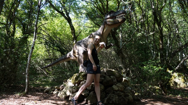 На следующий день 01.09 мы отправились на экскурсию. Наш таксист Бадри отвез нас в пещеру Прометея, но, к сожалению, там был выходной, поэтому нам пришлось ехать дальше – в Парк «Юрского периода», где мы смогли лицезреть следы динозавров, их же макеты, красивую панораму на окрестности.