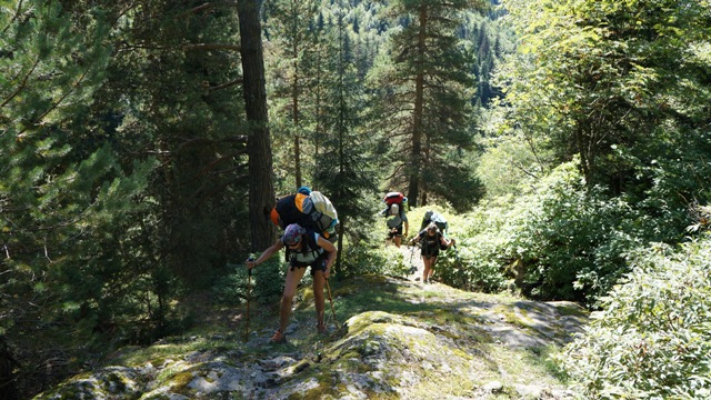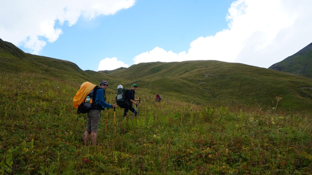 Первый километр пути по этой тропе, мы сомневались в правильности направления, но встретив группу туристов, идущих в Адиши, разогнали наши сомнения. Шли уже с песнями: «Если с другом вышел в путь…», «От улыбки хмурый день теплей…» и многое другое из детского репертуара Владимира Шаинского. Начинал моросить мелкий дождик, пришлось ускориться, ведь надеялись до темноты спуститься в деревню и забрать заброску.