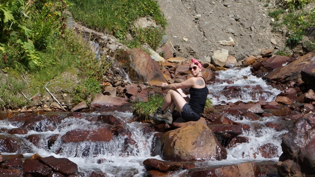 После спуска оказались на равнине и сразу устроили привал-обед. Радовало изобилие воды, т.к. после прохождения достаточно долгого пути, ручей, по которому мы спускались, набрал уже хорошие разгон и мощь. Дамы решили воспользоваться наличием хорошего напора воды, солнца и совершить банные процедуры. Но уже через час все чистые, сытые, отдохнувшие и довольные двинулись дальше.