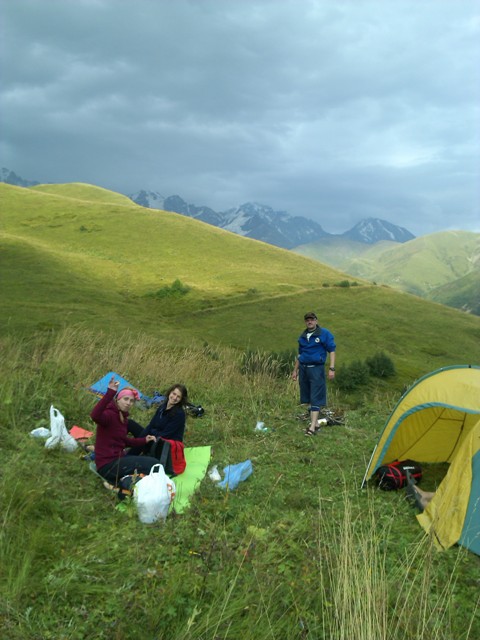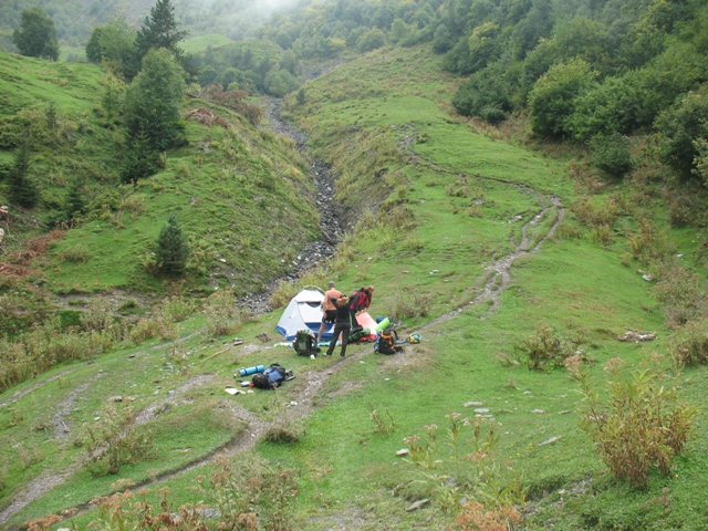 Во время ужина на нас набрел молодой человек, родом из Жабеши, Бека. Работал он в деревни Адиши с туристами. Также Бека является чемпионом Грузии и Европы по альпинизму, а его отец работает инструктором в этой же области. Мы подробнее разузнали про наш маршрут, взяли у парня контактный номер телефона, и, в случае надобности, пообещал помочь. Пообщавшись немного с нами, Бека удалился в темноту, подсвечивая дорогу фонариком мобильного телефона. А ночью снова пошел дождь.