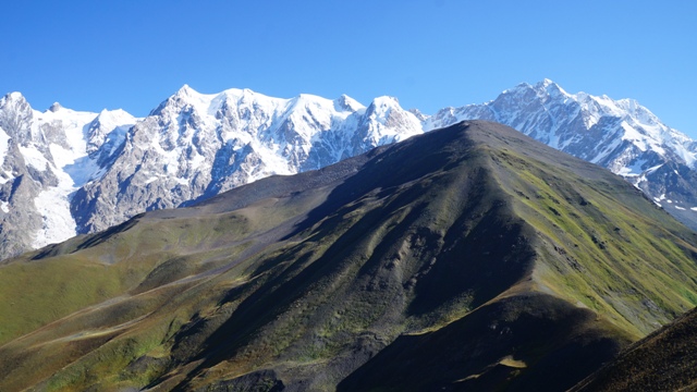 Наш ночлег находился непосредственно под самим перевалом Чхундер, поэтому к подъему траверсом мы приступили, едва перейдя дорогу. Вышли поздновато, поэтому попали под палящее солнце, которое уже поднялось достаточно высоко.