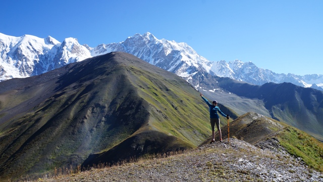 Пока наши взоры были направлены на скалы, в пятистах метрах появился человек в ярко-зеленой куртке. Это был Максым-Шаро. Вопреки всем правилам хождения группой в горах. И именно его Полковник видел на скалах. Мы рванули встречать Макса.