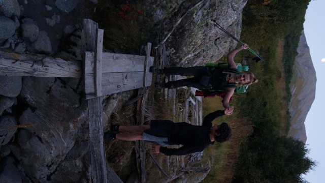 Уже к часам пяти вечера мы добрались, нам казалось, до верней точки холма и тут нас застала непогода – начался град. Желание его переждать через минут 15 сменилось на необходимость быстрее перевалить через холм и искать укрытие от непогоды. Подъем был жестковат, так как трава была уже мокрая и ноги соскальзывали постоянно. Кое как, цепляясь за растительность на холме, мы все-таки смогли взобраться, и нашему взору предстала следующая картина: перед нами был еще более высокий и крутой подъем, на который времени сегодня у нас уже точно не хватит. Благо перед подъемом была небольшая ровная площадка, на которой и была разбита наша палатка.