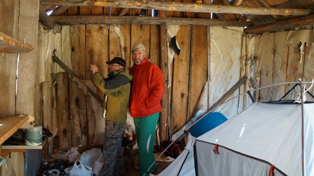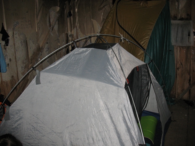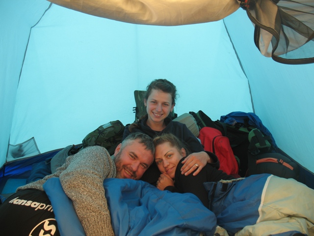 Немного пообщавшись, местные покинули нас и уехали в деревню, а мы приступили к обустройству своего ночлега. Палатку разбили в летнике, а так как двери не было, то верхним тентом палатки завесили вход в домик, чтобы не задувало ветром. Уютно и тепло было нам этой ночью. Поужинав под веселые рассказы Русьянова и Полковника, которые приняли по дежурных сто грамм в спиртовом эквиваленте, все улеглись спать: девочки в палатке, а ребята за ее пределами.