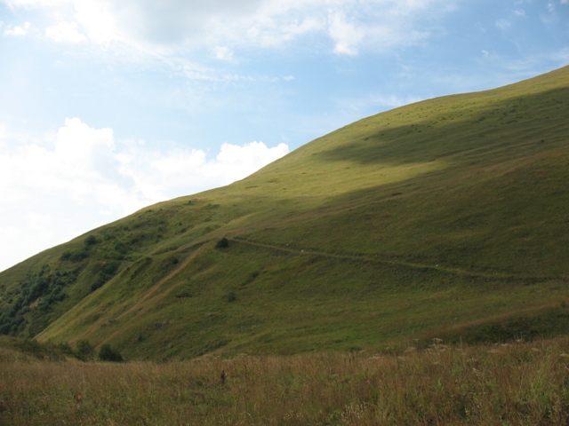 Очень мешали движению заросли борщевика, который в этих местах достигали гигантских размеров и в общем заросли всевозможных растений, покрывающих холмы не доставляли особого удовольствия. Поднимаясь на очередной холм, Руся соскользнул и скатился на пару метров вниз, расцарапав конечности. Чаще останавливались на отдых.