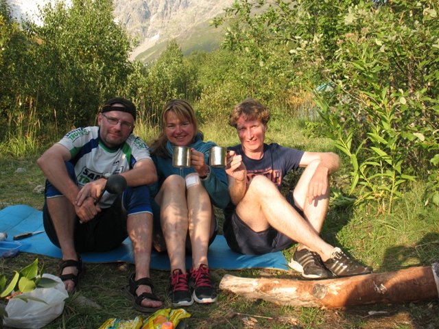 И понравился Русьянову кучерявый парнишка Виталик, который оказался очередным кандидатом в мужья для Арнтгольц. Договоренность о том, что при встрече с местными будем представляться парами, из-за отставшего Трусова немного претерпела корректировки, поэтому по новой легенде мы путешествовали семьями: Полковник и Оленька Хлимович – одна пара, Русьянов и Катюша Гуд – вторая, а Арнтгольц - дитя от этого счастливого союза. А «батя» Арнтгольц – Русьянов очень сильно хотел отдать дочь свою именно за грузина. Вот на фоне этой «конители» было распито немного спирта со старейшинами.