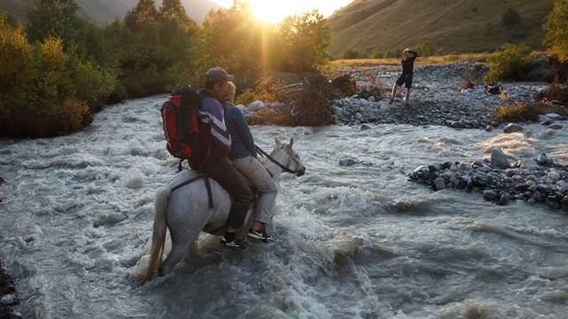 Оля Хлимович, была нашим делегатом и, разобравшись в сути проблемы с переправой, быстро нашла выход в сложившейся ситуации – она являлась обладательницей номера местного жителя, который мог пригнать лошадей и перевезти европейцев на «большую землю».
