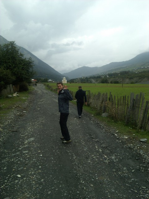 По приезду в Местию, Ириклий передал нашу группу следующему водителю, которого звали Гига, и который впоследствии разрешил нашей немаленькой компании пожить немного у него на огороде, пока не приедет наш отставший товарищ Соня. А так как уже значительно повечерело, а спать не хотелось (все успели выспаться во время переезда) решили отправиться на поиски еды и приключений.