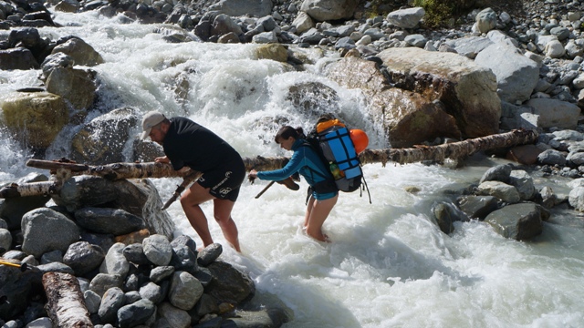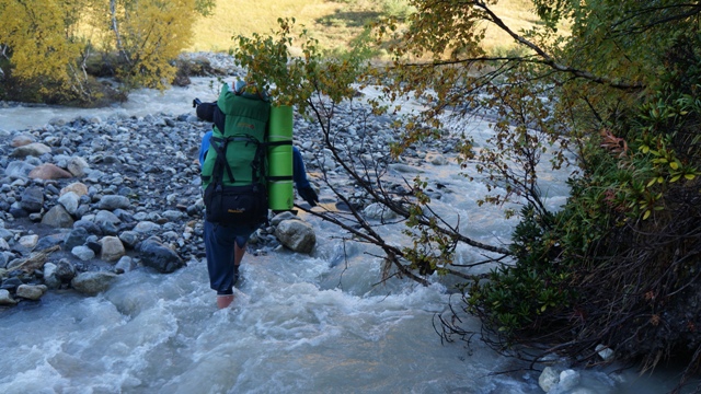 Спустились только к пяти вечера. Идти дальше не было возможности, ведь мы были отрезаны от большой земли быстрой, достаточно большой, холодной, горной рекой. Смысла форсировать реку не было. Решили дождаться утра и совершить переход.