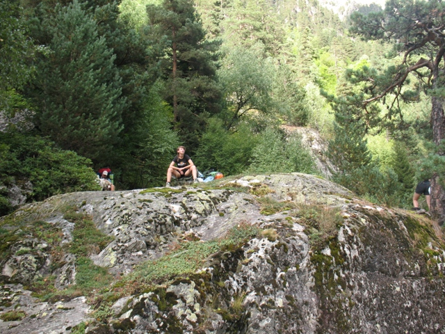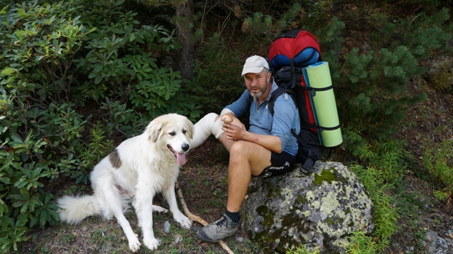 Собака Котэ все время нас сопровождала и периодически мы его подкармливали. Но вскоре тропа пошла через скалы и наше совместное путешествие с Котэ закончилось.