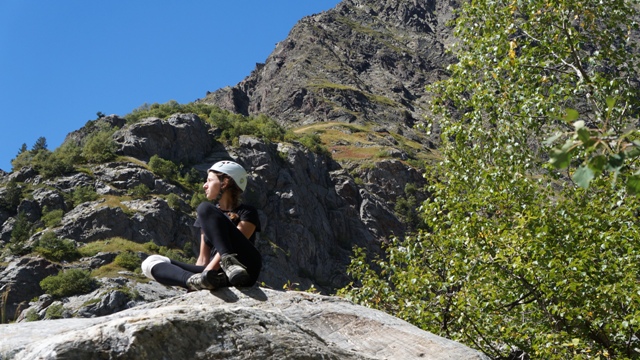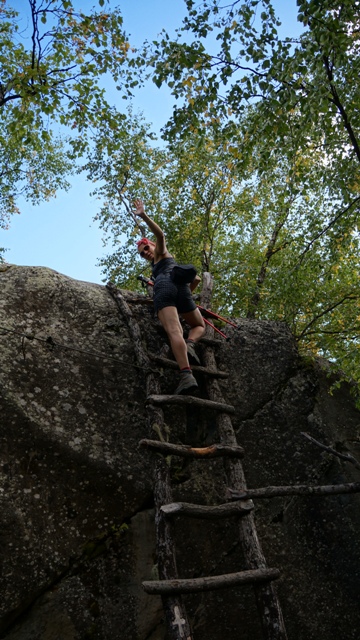 Взобрались по лестнице, устроили маленький привал, который, впоследствии, перешел в ночевку, ведь до заката оставалось менее двух часов. Хотелось бы отметить, что отсюда открывался прекрасный вид на долину и деревню Жабеши. Нашли на скалах хорошее место для палатки и разбили лагерь.