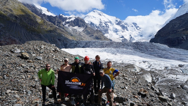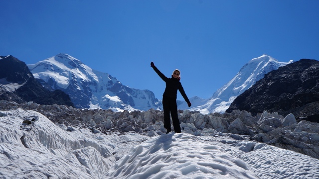 Терпение иссякло через час, и Полковник отправился в разведку. Оля Хлимович и Арнтольц отправились на ледник, с расчетом на то, что на белом фоне нас быстрее заметят. Пока гуляли, сделали маленькую фотосессию, ведь в солнечных лучах ледник был просто шикарен.