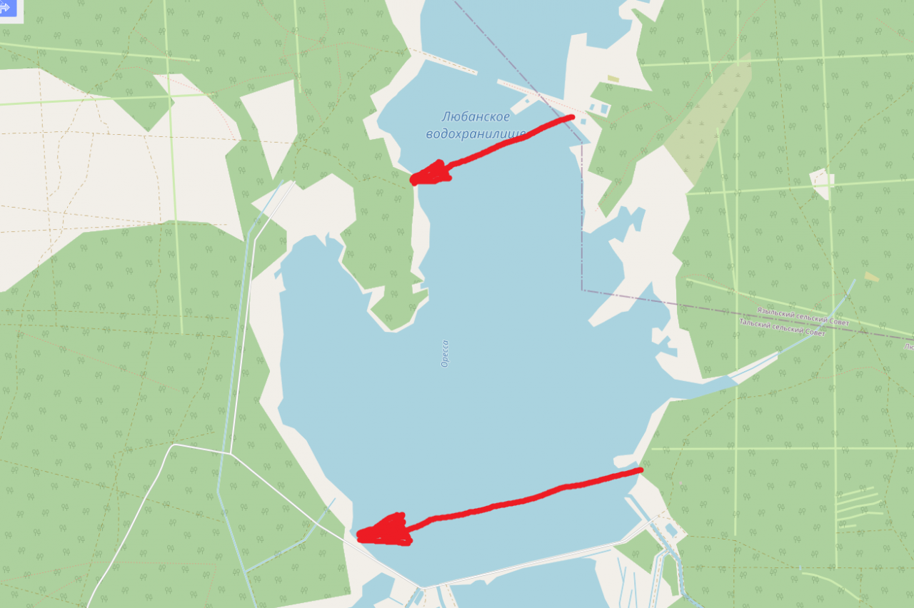Летом рабочие - Гетюки, Андрей Кононович и Антон Сергеевич Василевский открыли створ дамбы и сбросили около метра уровня и без того мелководного водоема. Глаз вел это дело и собирал информацию. Официальный ответ на запрос был примерно такой: «В августе дамба водохранилища (образовано оно в 1966 году) начала сочиться возле главного шлюза. Возникла реальная угроза прорыва дамбы и затопления ниже обширных территорий в бассейне реки Ореса. В том числе и райцентра Любань. Исходя из этого, местными властями было принято решение срочно сделать контролируемый спуск водохранилища и укрепления дамбы путем бетонирования вокруг шлюза. Работы продолжаются и по сей день (январь 2021)». По несчастью наша группа решила опробовать пересечение водохранилища вдоль в самый разгар авральных работ. Глаз корил и упрекал потом знакомых Любанцев. Что же вы, суки, не предупредили. Они, Любанцы, каялись, что и сами были не в курсе. Да и дела им нет до этого водохранилища.