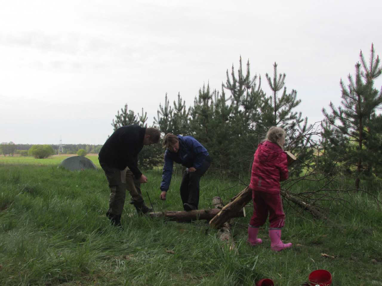 Всю ночь лес не замолкал от птичьего пения. С рассветом к этому хору добавились новые голоса. Коротко постучал по тенту палатки дождик. А потом солнце пригрело так, что просто выгнало на улицу. Девочка Тая деловито тащила к костру бревно, размером с нее саму.