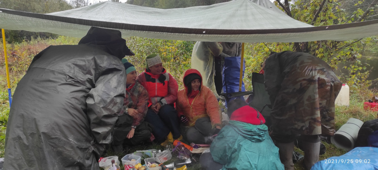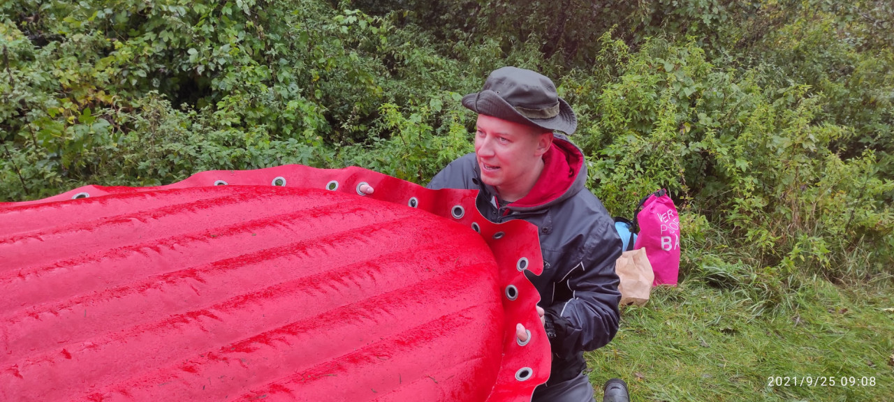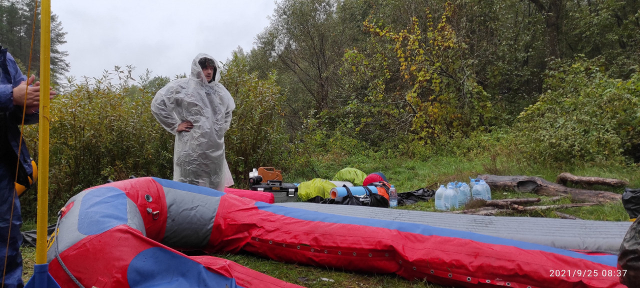 По приезду на точку стапеля под непрекращающимся дождем быстренько выгрузились, натянули тент и ребята ловко начали надувать рафты и лодки. Дело это долгое, но как показала практика сплачивает коллектив на раз. Все были организованы и ответственны. Кто-то организованно работал, а кто-то не менее организованно согревался под тентом и активно согревал окружающих. Через пару часов судна были готовы и спущены на воду.