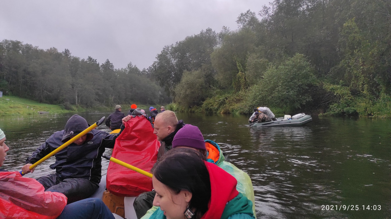 Погрузив рафты, лодки и моторы, мы двинулись в путь. Я как человек новый, первый раз участвовавший в мероприятии Магадана, но достаточно наслышанный о них, хочу отметить, что коллектив оказался еще приятнее, чем по рассказам. Почти всю дорогу не утихали веселые рассказы о других походах и курьезных случаях в них, как не утихал и дождь, который порядком беспокоил, потому что плыть весь день промокнувшему до ниточки не хотелось.