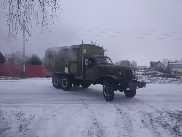 Давно собрали у Глаза на даче ЗИЛ 157КД. Тема автопробегов, похоже канула в лета. Но довольно стихийно мы собрались 2 декабря и кстати, катались. Первым делом спалили, конечно, ручник! На шоссе в одном из колес, кажется, есть булка. И автолюбители даже забыли слить с радиатора воду (благо, была оттепель).