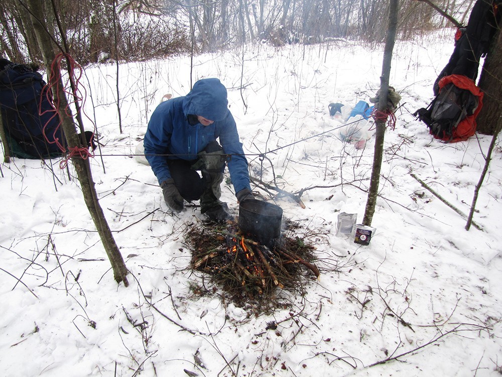 хватит ли аккумулированного тепла до мгновения когда появятся первые языки согревающего пламени. Ну в общем, почти по Джеку Лондону, только вот, ты не читатель а действующее лицо. И ещё, чем больше деятельности, тем тебе теплее, и тепла у тебя на полдня ещё как минимум, а там кофе, завтрак тебе его добавят. Движение с рюкзаком даст тепло от расщепляемых жиров и углеводов, а солнышко будет немного обогревать твою тушку.