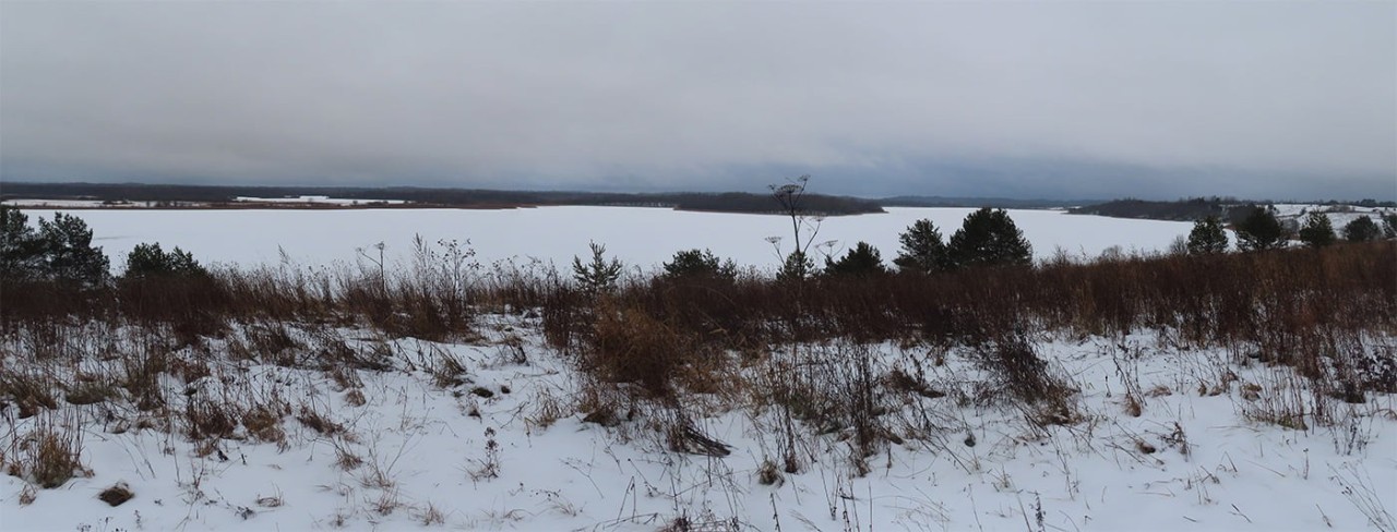 Снег перестал, видимость улучшилась. Сделал панорамный снимок в сторону озера Усвея.