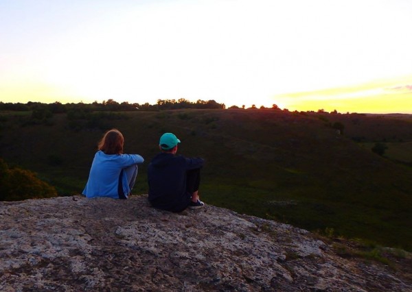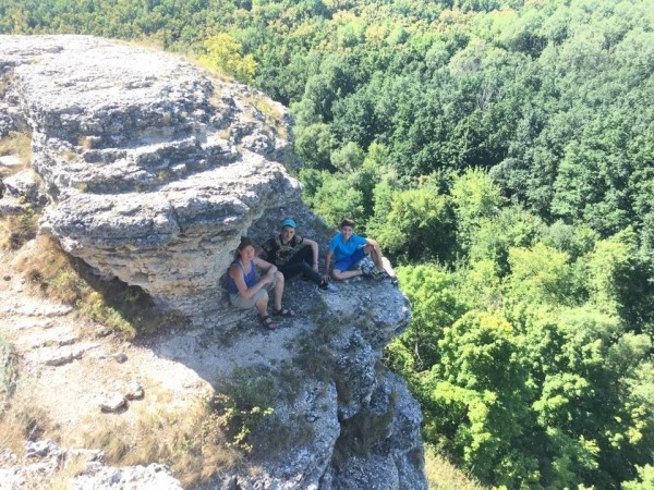Приехали на стоянку уже в ночи. Вокруг - кромешная тьма, а наверху - звездная россыпь... август все-таки. Единственный, кто нас встретил - ежик, как предвестник нашего основного маршрута на скалах. Быстренько поставив палатки, улеглись спать. Утром юным скалолазам не спалось, поэтому, позавтракав, отправились искать сектора с простыми маршрутами. Так как расположились мы на большой нижней стоянке массива "Звонари", то на скалы приходилось совершать маленький трип - сначала вверх, на плато, а затем по крутой и скользкой тропинке вниз, под маршруты. Получалась такая хорошая разминка.