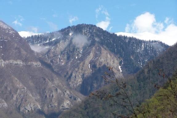 Дорога длиной 40км начинается недалеко от города Гагры. И с каждым километром подъема чувствуется холодное дыхание высоты. Если на побережье царит лето, солнце и радость, то здесь еще по пояс лежит снег и совсем нежарко. Глядя на окрестности, чувствуешь себя между небом и землей. И горы, словно степенные старцы в белых папахах, молчаливо охраняют покой и тишину.