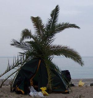 Зайдя в знаменитую Ново-Афонскую обитель, перебираемся на ночевку на пляж. И тут же попадаем в руки милиции. Нет, мы ничего не нарушили, просто ребятам было скучно на дежурстве, а тут 2 таких «сумчатых» индивидуума. После сильно затянувшейся беседы «за жизнь», с нас взяли обещание поставить палатку прямо на берегу возле отделения. Мол, так спокойнее. Что мы и сделали.