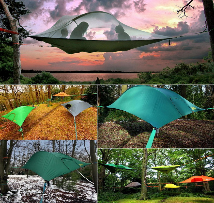 Иногда складываются такие ситуации, когда крайне нежелательно спать на земле. Это и не очень хорошие погодные условия, вероятность быть укушенным насекомыми или змеями, а также наличие диких зверей могут стать причиной испорченного отдыха. Тут, как нельзя кстати, пригодится палатка-гамак Tentsile, подвешиваемая на 3-х деревьях, которая была разработана британским архитектором Алексом Ширли-Смиттом.