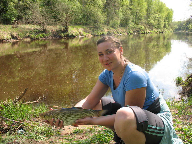 Катя и рыба голавль (слева)