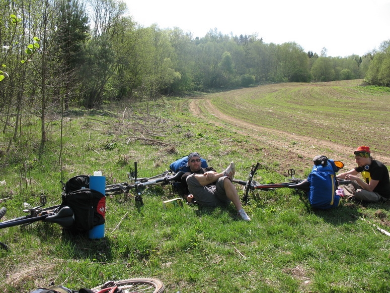 Горело в полукилометре поле, туда поехала пожарная машина. Дизель ушел прямо перед носом. Тот, что на Оршу. Ждать нужный пришлось часа примерно три. Расположились под деревом: одиноко стоящая береза. А я им и говорю, мол продолжайте ехать велосипедно в Толочин. А тут еще и Ашик приболел, так и решили свернуть эту программу.