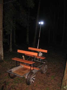По приезду на место дрезину разгрузили, сняли с рельсов и общими усилиями закатили к месту разбивки лагеря. Артем достал аккумулятор и подключил фары на дрезине, которые были сварганены из двух мощных светодиодных фонариков.