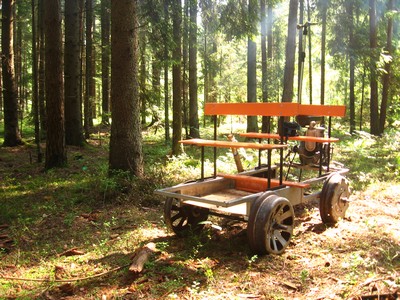 От того места, где дрезину заклинило до выезда из леса оказалось около 500 метров. А может и меньше. Вовремя соскочил ремень с привода, ничего не скажешь.