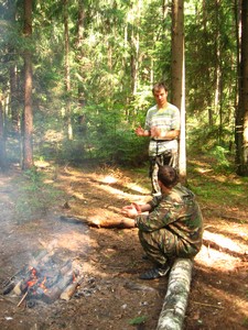 к тому же еще и сильно закопченной. У нас в ЗИПе(Запчасти Инструменты Принадлежности) была запасная, попробовали поставить ее - безрезультатно. Проверили магнету на наличие искры - искра есть только на одной из свеч, той которая более закопченая. Та, которая поновее, почему-то халявила и искры не давала. Эх, была бы сейчас таблетка сухого спирта, можно было бы в полевых условиях прокалить свечу от всякой бяки. Однако сухого спиртау нас не было, и это была, в общем, моя вина. Я настоял на том, что в такую жару, которая стояла на улице, брать сухое горючее в поход - это матрасничество. Поэтому волшебные таблетки остались в машине на стоянке. Зря. Ну что же, протерли свечку, как сумели, поставили обратно.