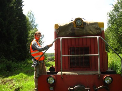 Доехав почти до полей торфоразработки мы уткнулись почти самым носом в тепловоз, стоявший на путях.