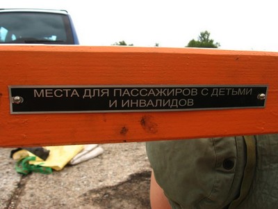 Прямоугольная рама, на которую привинчиваются две скамьи со спинками, по типу школьных стульев. На спинке переднего сиденья, где я ехал всю покатушку, привинчена шурупами табличка "Места для детей и