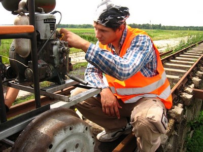 Слава – механик и заводила(большую часть пути Слава заводил дрезину с толкача)