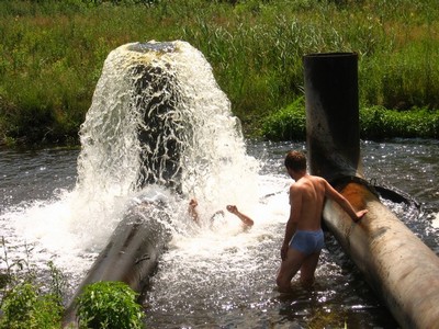 Фонтан оказался загнутой кверху трубой диаметром около метра, из которой под напором выбрасывалась вода. Я не помню, откуда приходила труба, однако вода была абсолютно чистой и не имеющей никакого запаха.