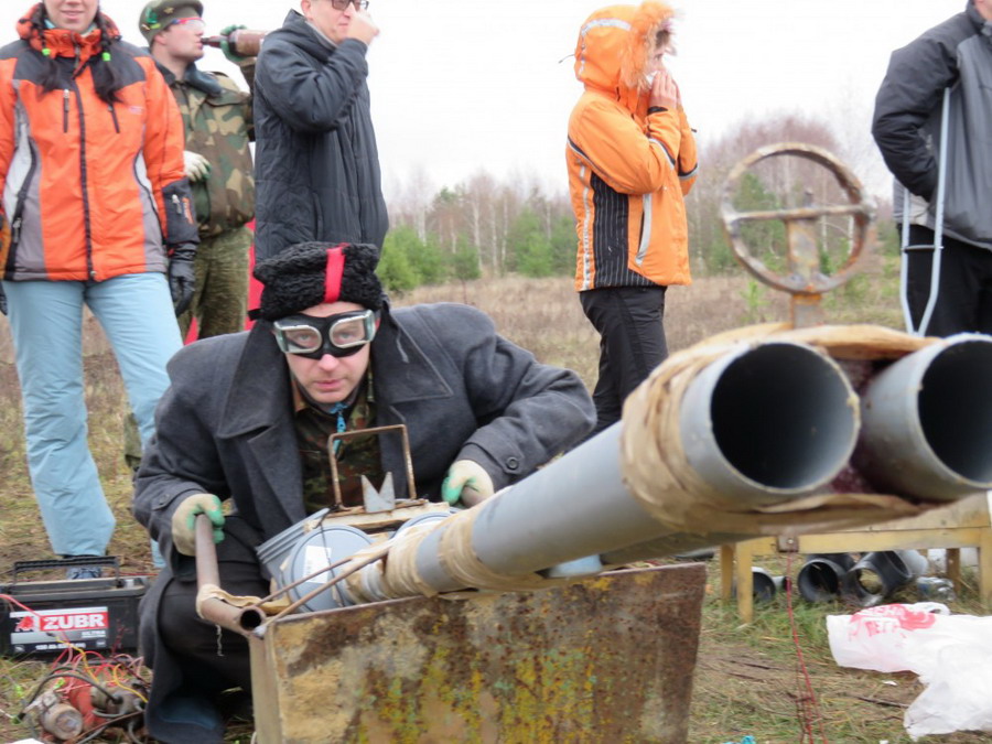 Соревнования на дальность закончились с предсказуемым результатом — Сантик с нежностью поглаживал ещё тёплый металл трубы. Интрига сохранялась в прицельной стрельбе. Сопя сосредоточенно и злобно, стрелки склонились над говнопрочистками. Со стапелей плавно сошёл белоснежный корабль производства Бобруйской судоверфи. Обводами корпуса он напоминал легендарный крейсер «Аврора». Капитан Мюцаг, как и положено, последним покинул обречённую посудину. Рассекая волны, крейсер спешил покинуть акваторию Цусимского сражения. Вдогонку сыпался град снарядов. Кораблик лавировал, лавировал, да и вылавировал — невредимый, растворился в молочно-белом тумане, как одеялом накрывшем заболоченное озеро. Заранее заготовленным тыквам повезло гораздо меньше. Оранжевые огородные чудовища лопались одно за другим. В боевом экстазе расчёты выдвинулись на переднюю линию обороны. Гомельский Аппарат соорудил из палатки долговременную огневую точку. Оттуда нет-нет, да и вылетали шальные болванки, добавляя в орденскую книжку расчёта очередные награды. Свирепым злодейским главарём, какие обычно появляются в конце уровней восьмибитных видеоигр, из стана врагов выдвинулась квадратная рожа старого электронно-лучевого монитора. Ликвидировать босса доверили обладателю самого убойного оружия. Лёгким движением высоковольтной магнеты Сантехник подарил старому дисплею сверхсовременное реалистичное изображение — в сквозную дыру выглядывал живописный пейзаж торфоразработок на противоположном берегу. Взорвавшийся кинескоп ознаменовал закрытие соревнований.
