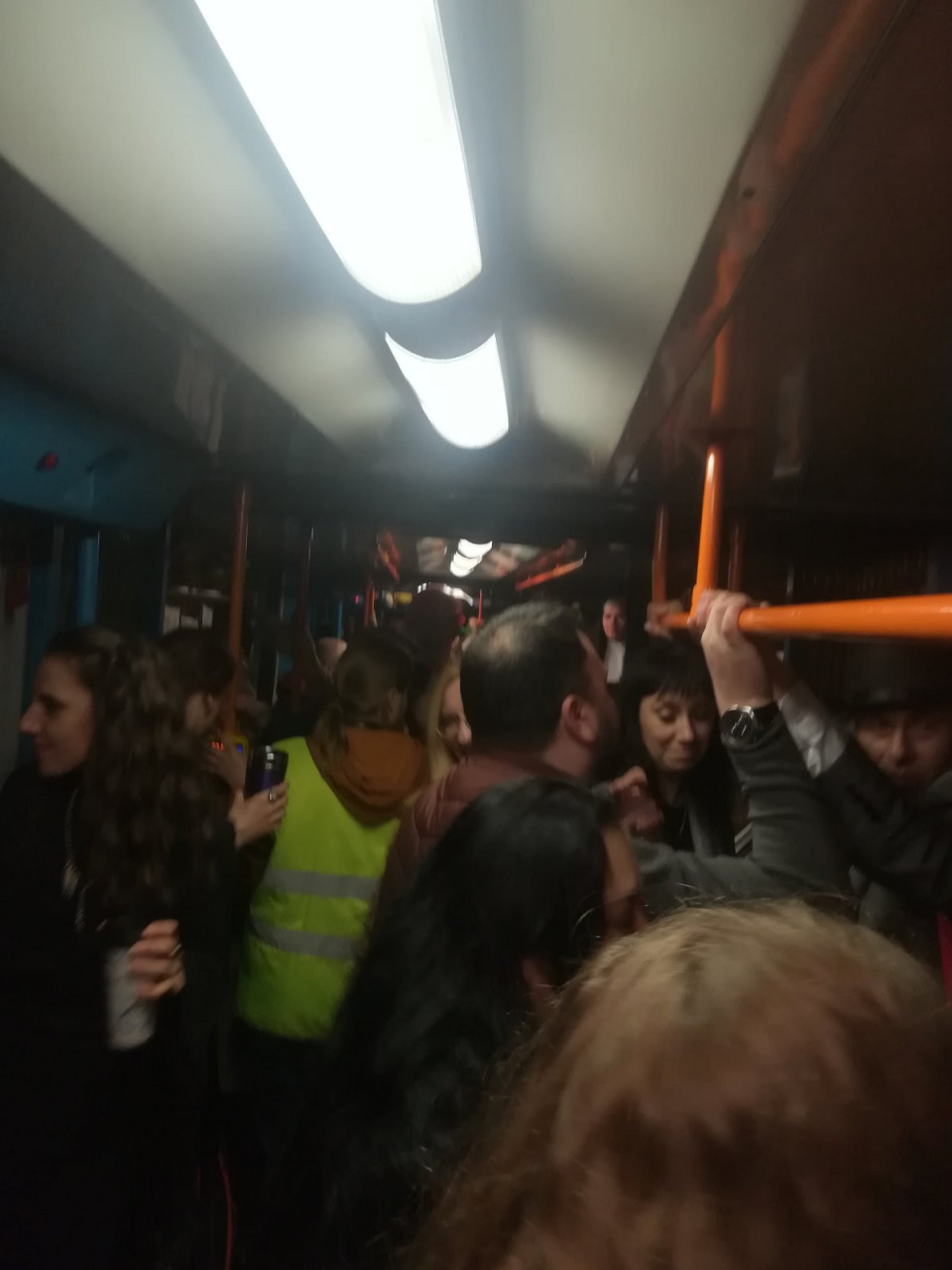 Оперативная посадка и вскоре Рейс тронулся. 20.01. Было еще светло, но вот вскоре уже как быстро стало смеркаться. Стало почти сразу очевидно, что сегодня сидячие места (а их 66) не актуальны. АКСМ 743 шел своим вполне быстрым темпом и безо всяких остановок, но полностью подчиняясь режиму движения. Взыграл почти тотчас после отправления духовой оркестр. Репертуар мы согласовали заранее.