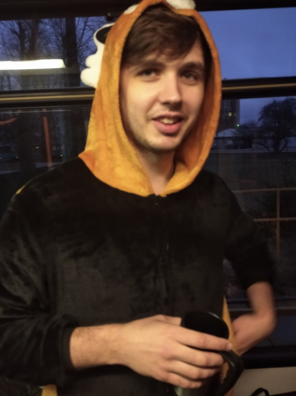 Подошел руководитель оркестра Родослав с голосом Антона Мощного, но внешностью (как оказалось) Вити Гетюка. Он уточнил, как лучше расположиться в трамвае. Глаз предложил, что подойдет, то как удобно им, музыкантам.