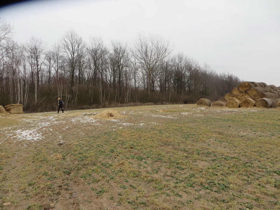 Наша группа бежала вдоль кромки поля, засеянном еще поздней осенью зеленеющей теперь без снега озимью. Было два градуса мороза. В неглубоких колеях лужи подернулись хрупким и ломким ледком. По правую руку за лесопосадкой было полотно железной дороги. Пробегая километр за километром, пейзаж сильно не менялся (поле было очень обширным). Разве что попались скирды золоченых тюков из соломы.